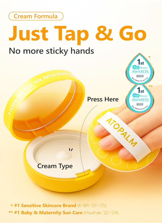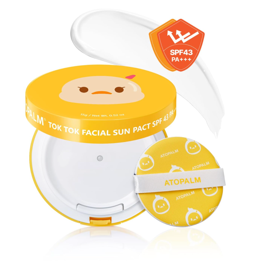 ATOPALM Tok Tok Facial Sun Pact | Korean Sunscreen Cushion SPF43 PA+++ | Moisturizing Sun Cream for Dry & Sensitive Skin | Mineral Compact SPF | K-Beauty Skincare 15g