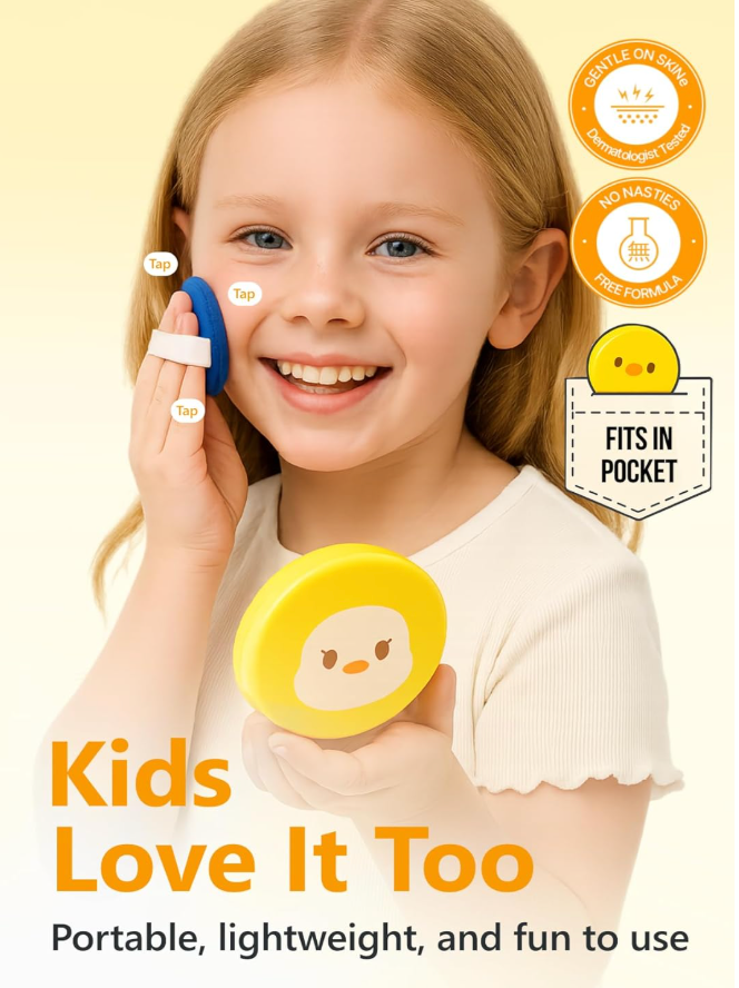 ☀️ Fun & Convenient Sun Protection – Aplicación fácil con puff; el diseño colorido hace que incluso los niños disfruten aplicándolo.