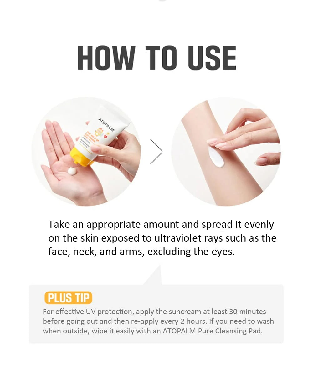 Nurture your skin while shielding it from harmful UV rays with ATOPALM Zinc Mild Up Sun Cream—a gentle, moisturizing Korean mineral sunscreen designed especially for dry and sensitive skin.